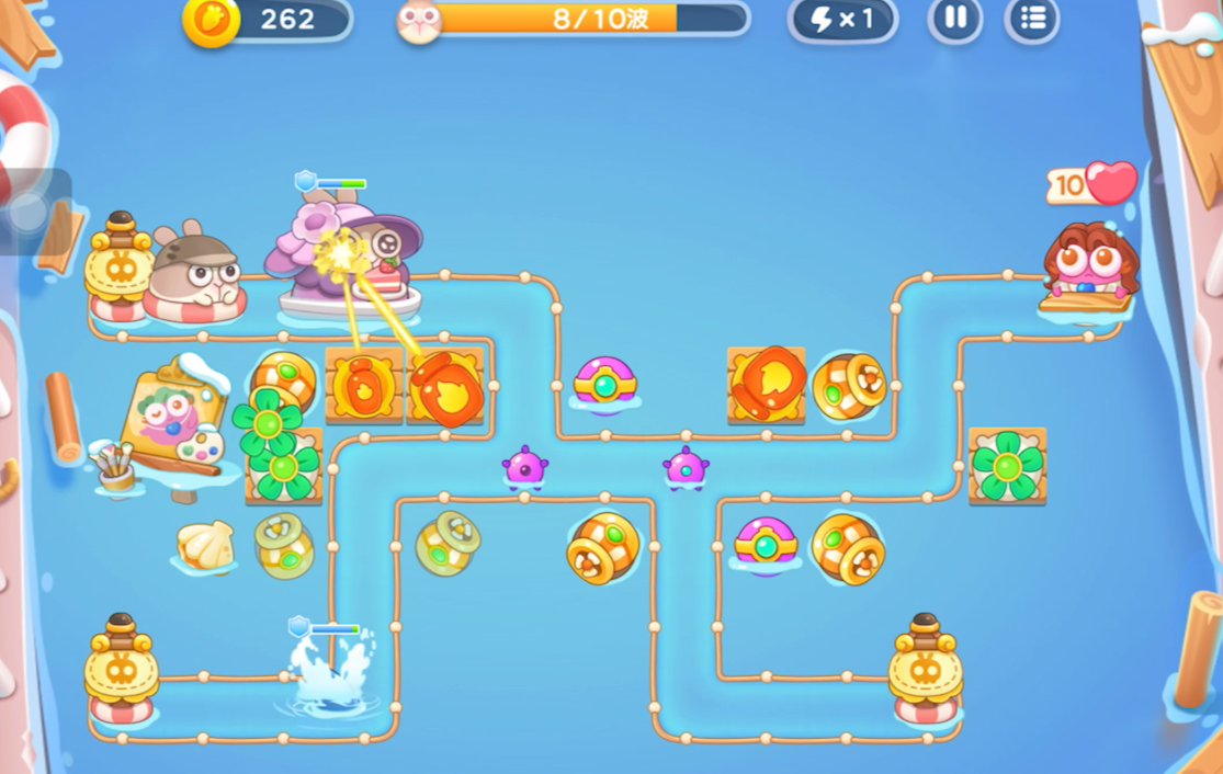 炮塔选择需兼顾范围伤害与单体爆发,优先升级主力输出塔如船锚、导弹或魔法球。开局阶段应快速清理障碍物获取金币,同时布置基础防御体系。例如第60关需建立鱼刺和手电筒锁定岩石,激活左上幽灵剑士协同作战。BOSS战阶段需集中火力应对恶魔兔的炸塔技能,通过毒针等持续伤害类炮塔弥补输出缺口。